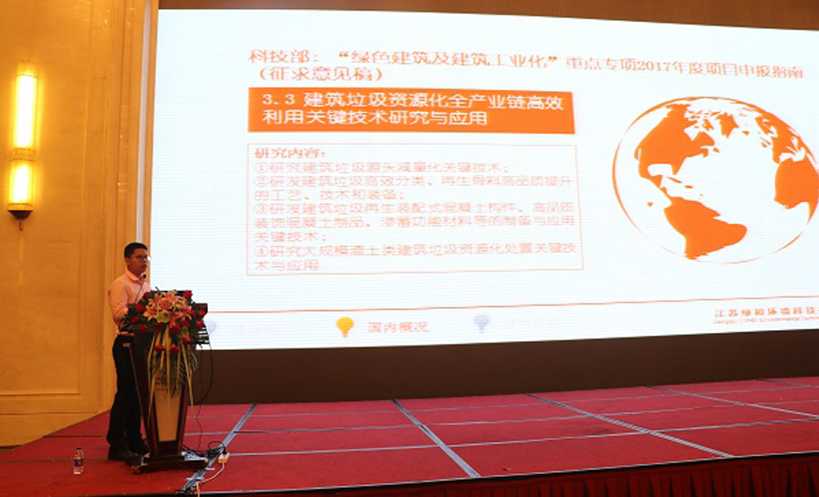 活動上,來自科研院所及高校的專家學(xué)者和企業(yè)代表分別作了專題講座。江蘇綠和環(huán)境科技有限公司工程師何冰川向與會者介紹了江蘇省循環(huán)經(jīng)濟示范項目——武進區(qū)年處理160萬噸建筑垃圾資源化利用項目。會后,與會人員還將參觀江蘇綠和環(huán)境科技有限公司和江蘇省綠色建筑博覽園。