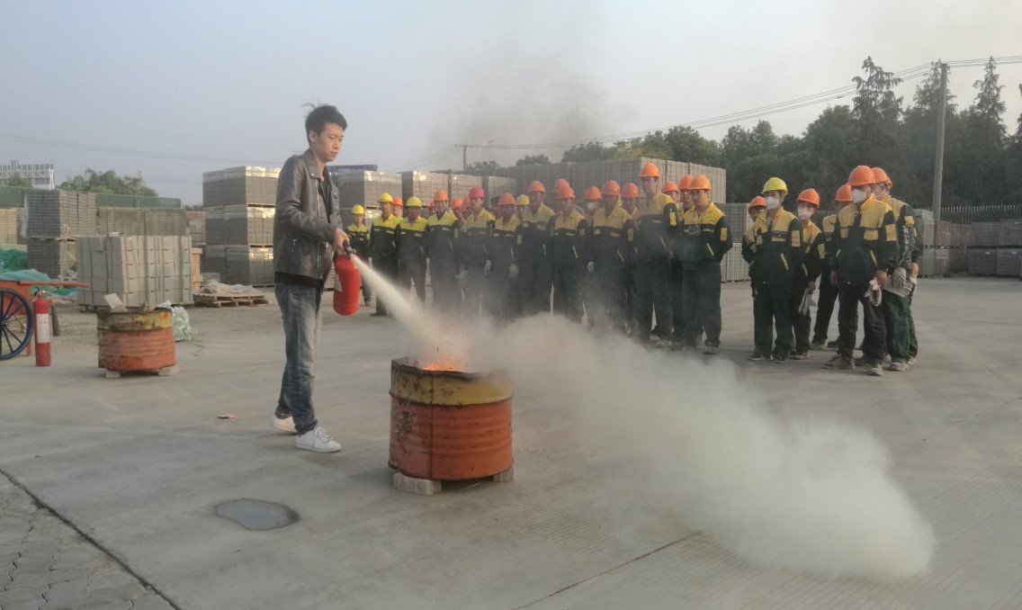 消防安全培訓主要由公司武進示范事業(yè)部營運部EHS專員戴濤主講,主要從消防器材介紹及使用、滅火方法及注意事項、火災處置等方面進行了詳細講解,并在培訓結束后,在廠區(qū)南堆場上舉行了多種滅火器滅火演練,由各部門人員輪流進行實踐操作,體會了解滅火器的使用方法。